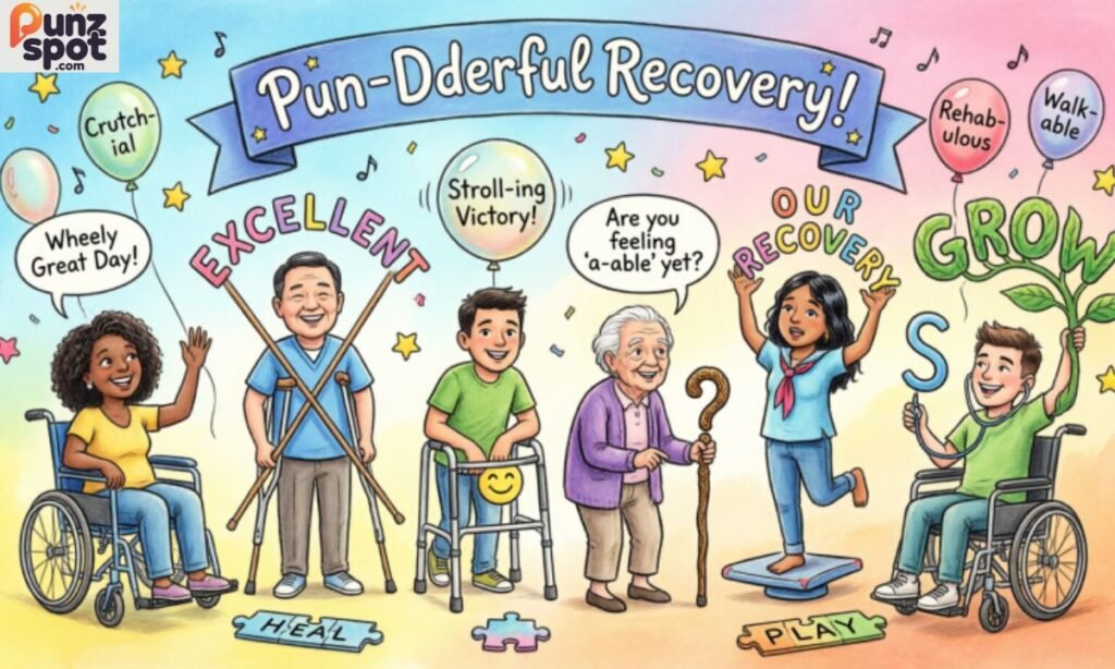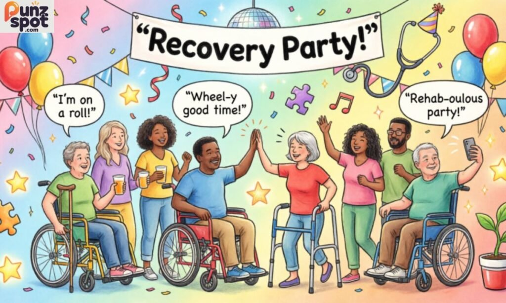 Rehabilitation jokes work perfectly in recovery rooms, therapy waiting areas, get-well cards, text messages, family visits, and recovery celebration parties. Any moment during the healing journey is the right moment for a good laugh.